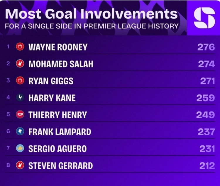 与此同时,英超历史数据也在不断被刷新,正如英超单一球队加入 得分 榜所呈现的:鲁尼(曼联 276 球)的记录 仍在等待应战 者,萨拉赫(利物浦 274 球)仅差 2 球便能追平传奇,吉格斯、凯恩、亨利等名字则早已将自己的印记刻在职业联赛 历史中。