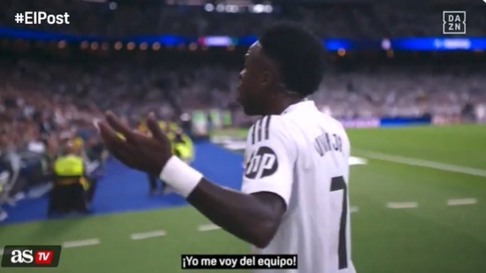 10月27日讯 据DAZN报道,维尼修斯在国家德比被阿隆索换下后拒绝与其击掌,并剧烈 反应:“我要离队,立刻就走!”