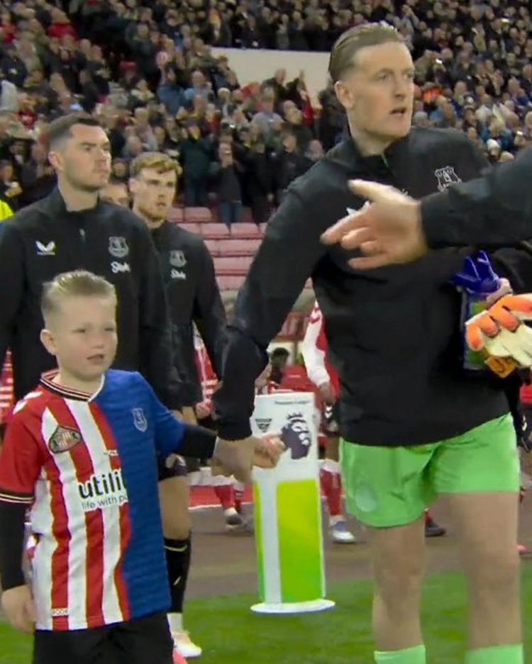 感恩!皮克福德儿子穿埃弗顿+桑德兰拼接盘带 衣,球员出道于桑德兰