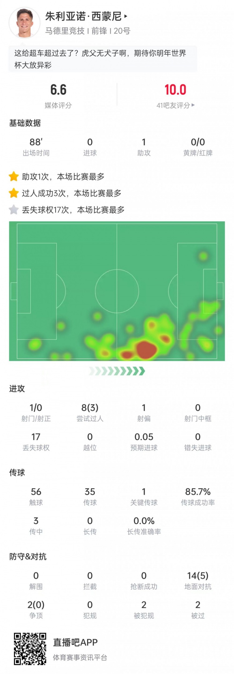 助功 小蜘蛛破门!小西蒙尼当选马竞vs圣吉罗斯全场最佳球员