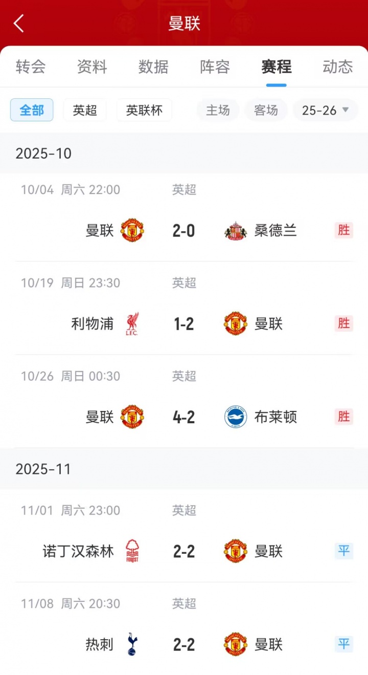 最近的五轮职业联赛 中,曼联一度接连战胜桑德兰、利物浦、布莱顿,足球直播无插件免费在线观看取得三连胜;上轮职业联赛 2-2战平森林。本轮对阵热刺的赛事 ,曼联在全场补时阶段被反超的情况下,由德里赫特打进了绝平的得分 ,从客场应战 带走一分。