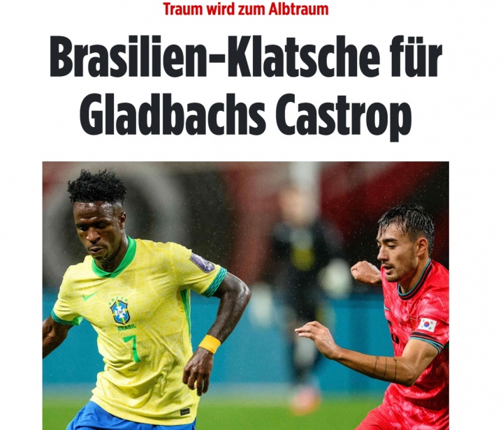 《图片报》以《美梦变噩梦:巴西队给门兴队的卡斯特罗普沉重一击》为题写道:“门兴中场球员卡斯特罗普经历了许多孩子在街头古代足球 或俱乐部青训时就理想 的场景:代表国家队参加对阵巴西队的赛事 !