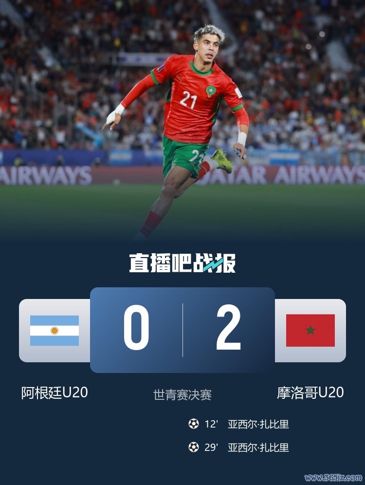 10月20日讯 世青赛总决赛 ,摩洛哥U20凭借扎比里的连进两球,2-0击败阿根廷U20,捧得第一名 。